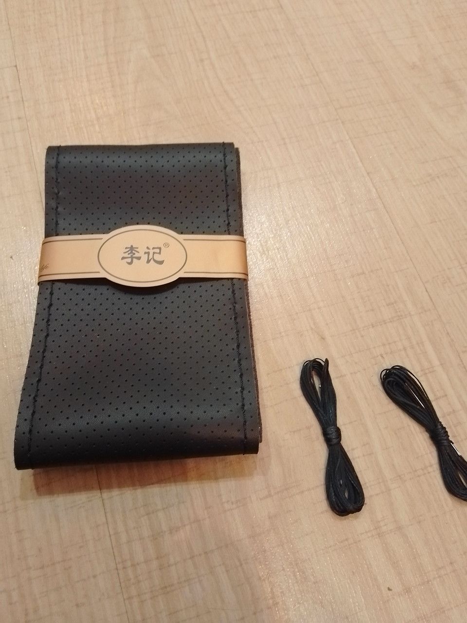 Шкіряний чохол на кермо автомобіля чорний 105*10,5 см.