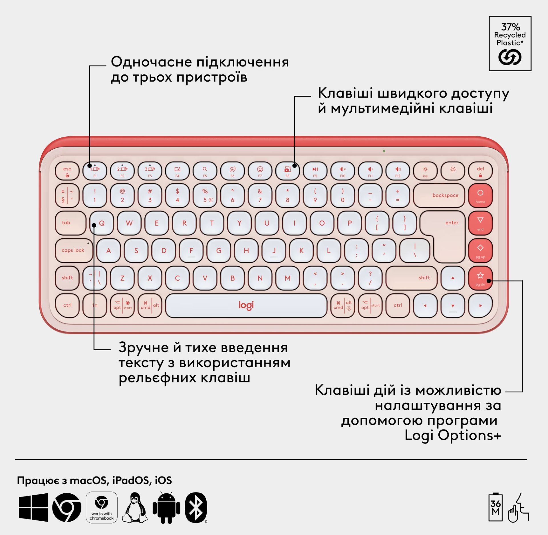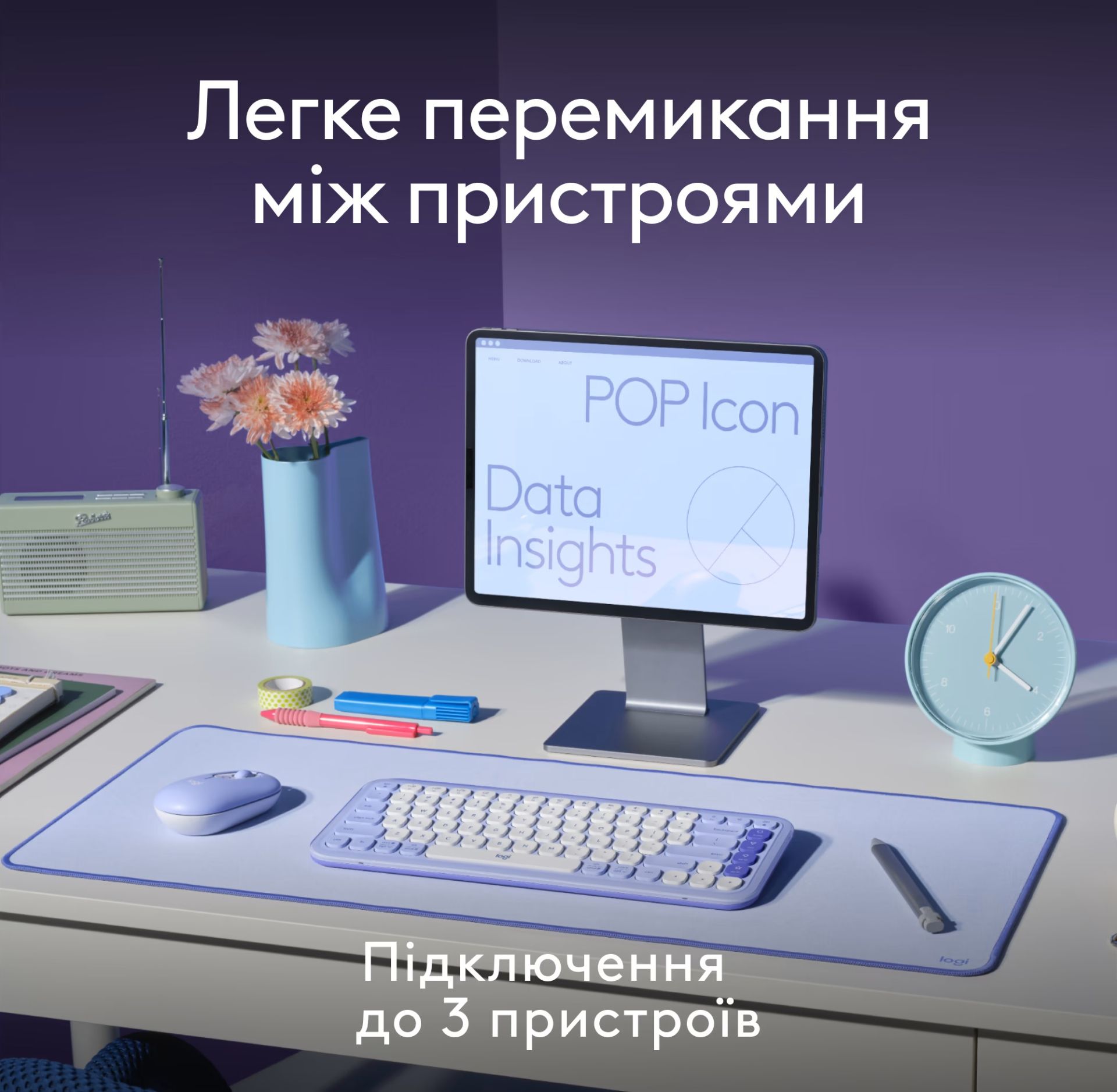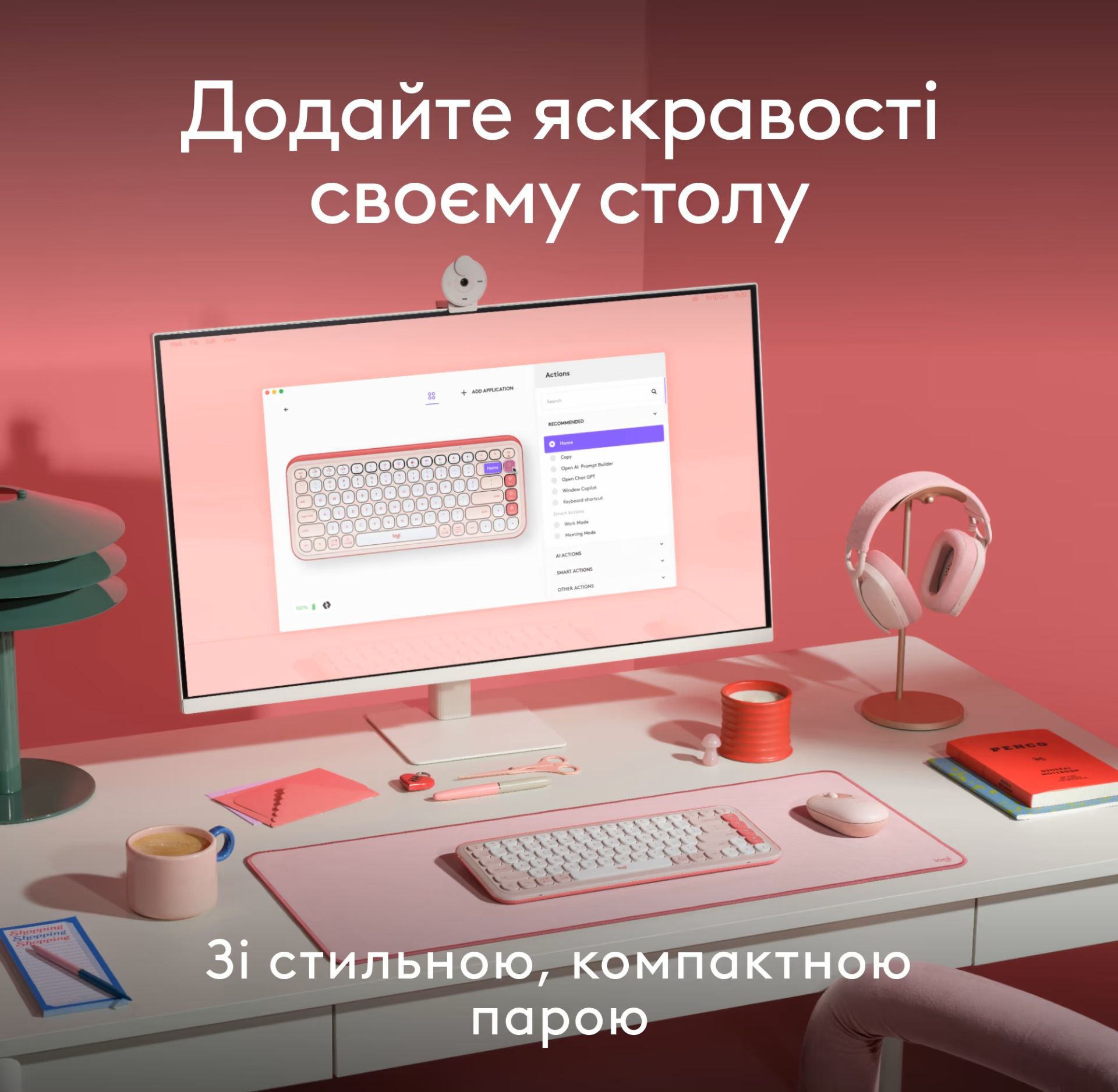 Комплект (клавіатура + миша) Logitech POP Icon Combo — це стильне та функціональне бездротове рішення для роботи, навчання та повсякденного використання. Яскравий дизайн, тиха робота, інтелектуальні функції та широкі можливості персоналізації роблять цей комплект не лише зручним інструментом, а й виразним елементом робочого простору.