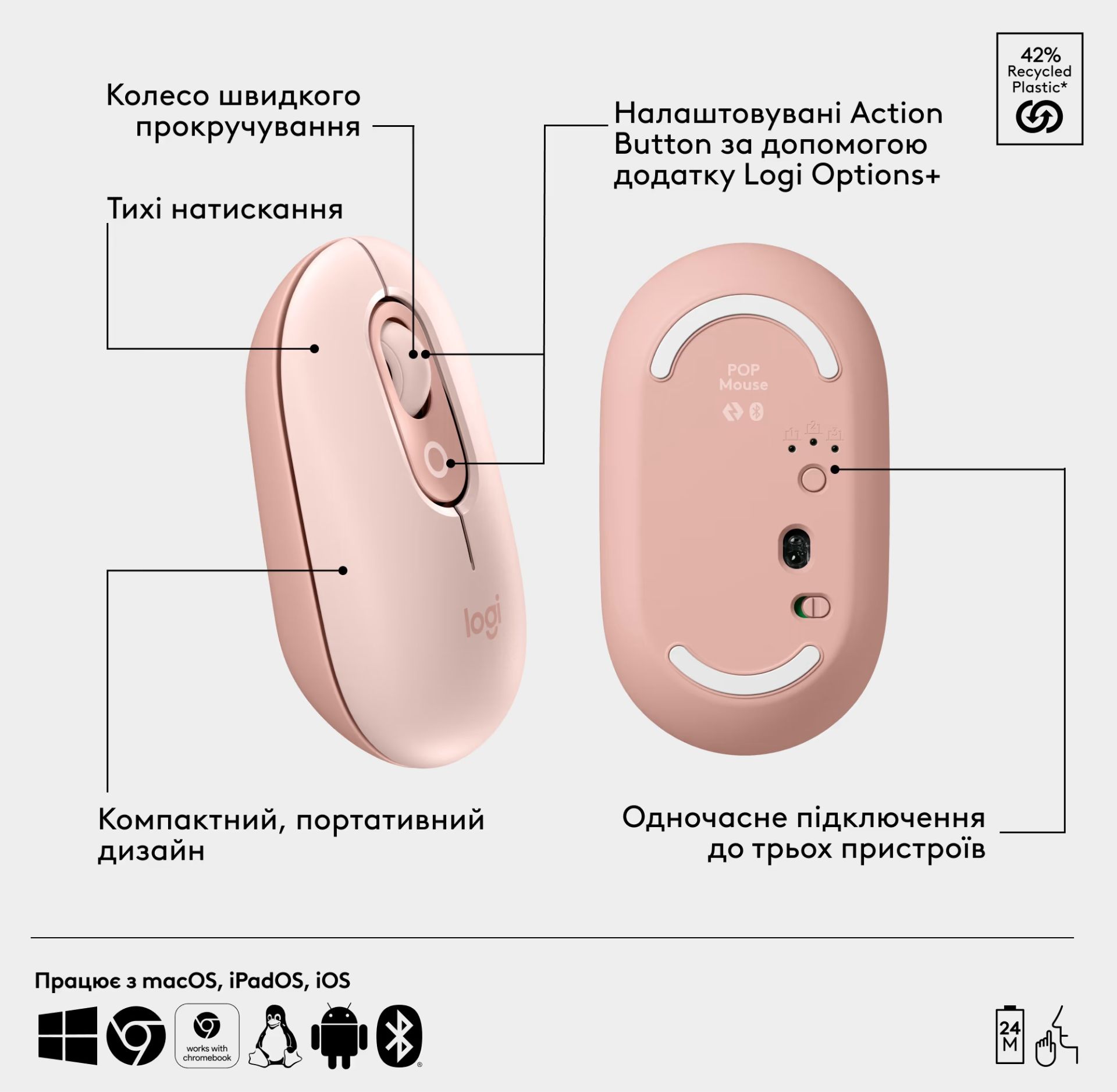 Комплект (клавіатура+миша) Logitech POP Icon Combo Tonal Rose (920-013142)