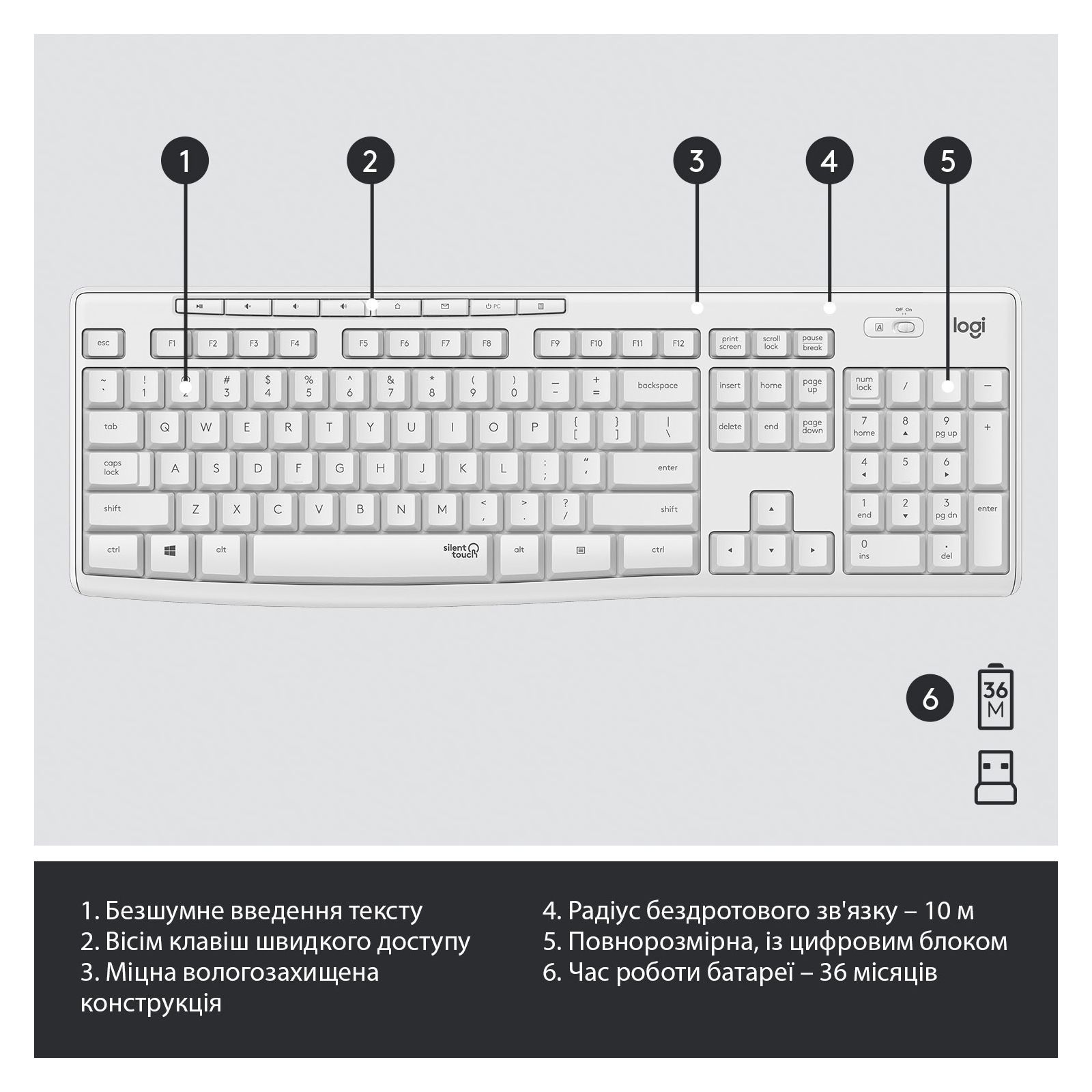 Комплект: клавіатура та миша Logitech MK295 Silent Off-White (920-009824)