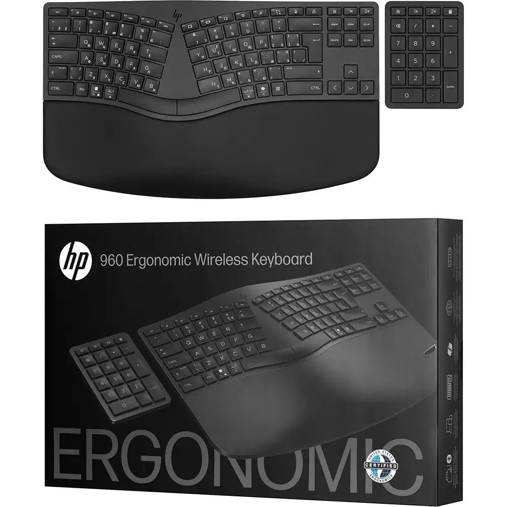 Комплект (клавіатура, Numpad) HP 960 Ergonomic Wireless, BT, 2.4G, Black (7E755AA)