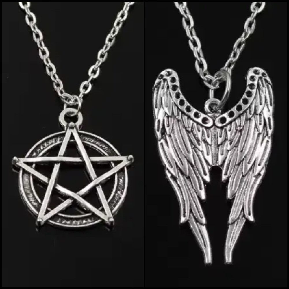 Набір підвісок петаграма і крила ангела комплект кулон з пентаграмою Надприроднє