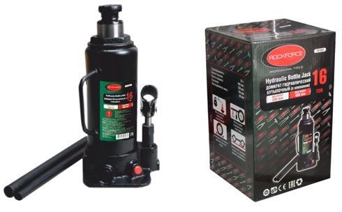 Код товару: 15124 , Склад: Домкрат гідравлічний RF-T91604 пляшковий з клапаном 16т (вис.підйому 230-460мм) ROCKFORCE /1/2