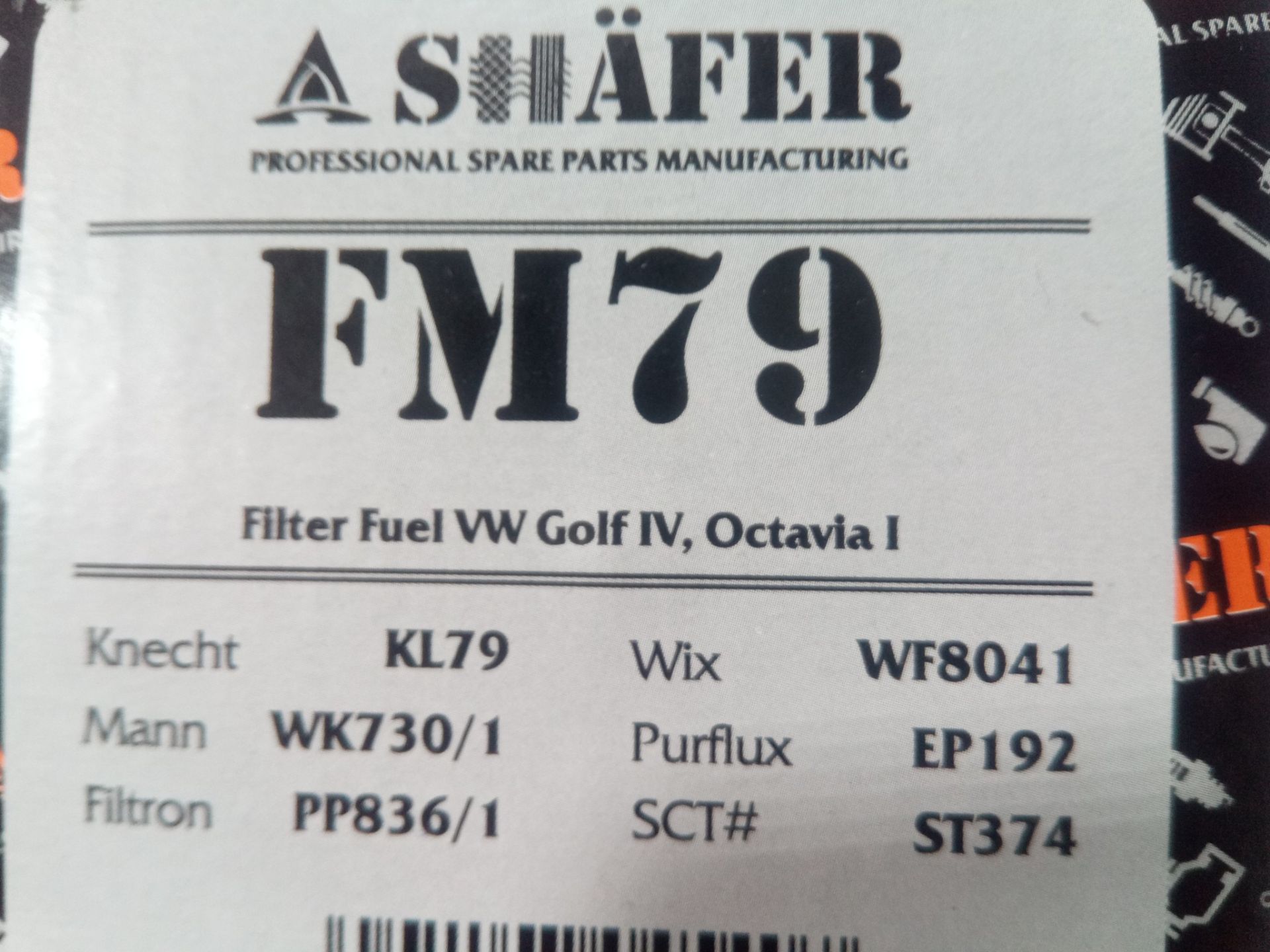 Фільтр паливний для VW Golf I-IV, Jetta I-II, T5, Octavia I, Audi A3, A4, A6, A8, 82-, SHAFER (FM79)