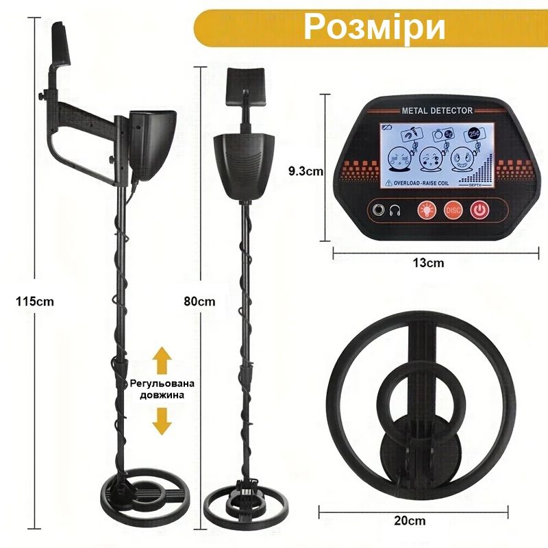 - Максимальна глибина виявлення великих металевих предметів: до 50 сантиметрів.