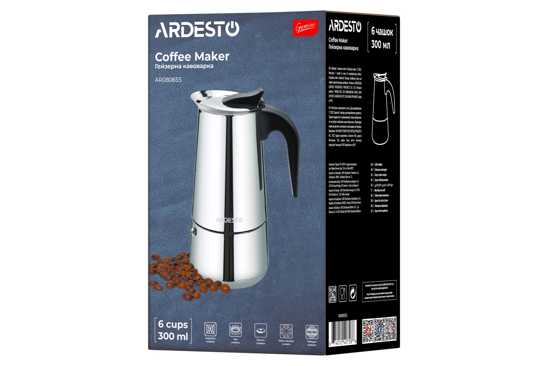 Кофеварка гейзерна Ardesto Gemini Apuli, 300ml (AR0806SS)