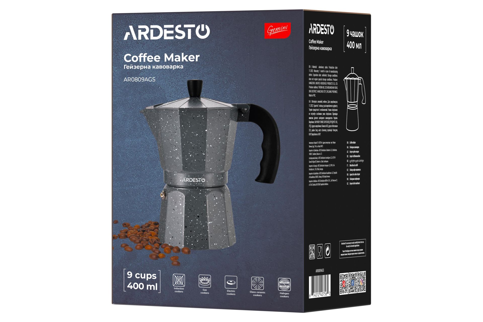 Ardesto Гейзерна Кофеварка Gemini Molise (400 мл, AR0809AGS)
