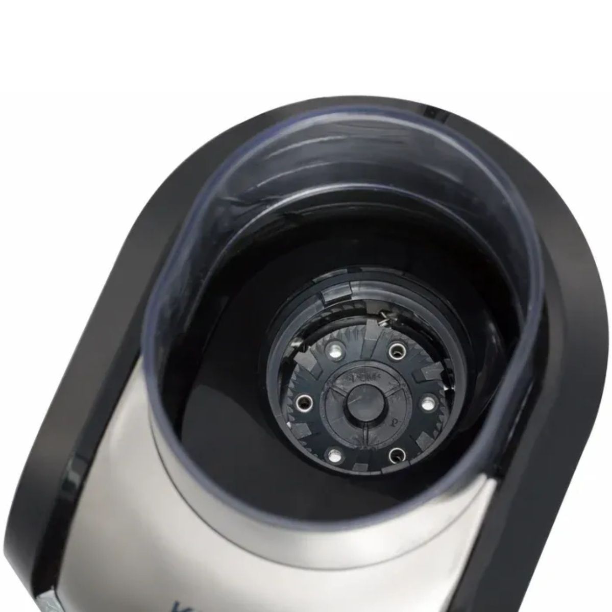 - Плоскі жерни забезпечують рівномірне подрібнення зерен без перегріву, зберігаючи натуральний смак та насичений аромат кави.