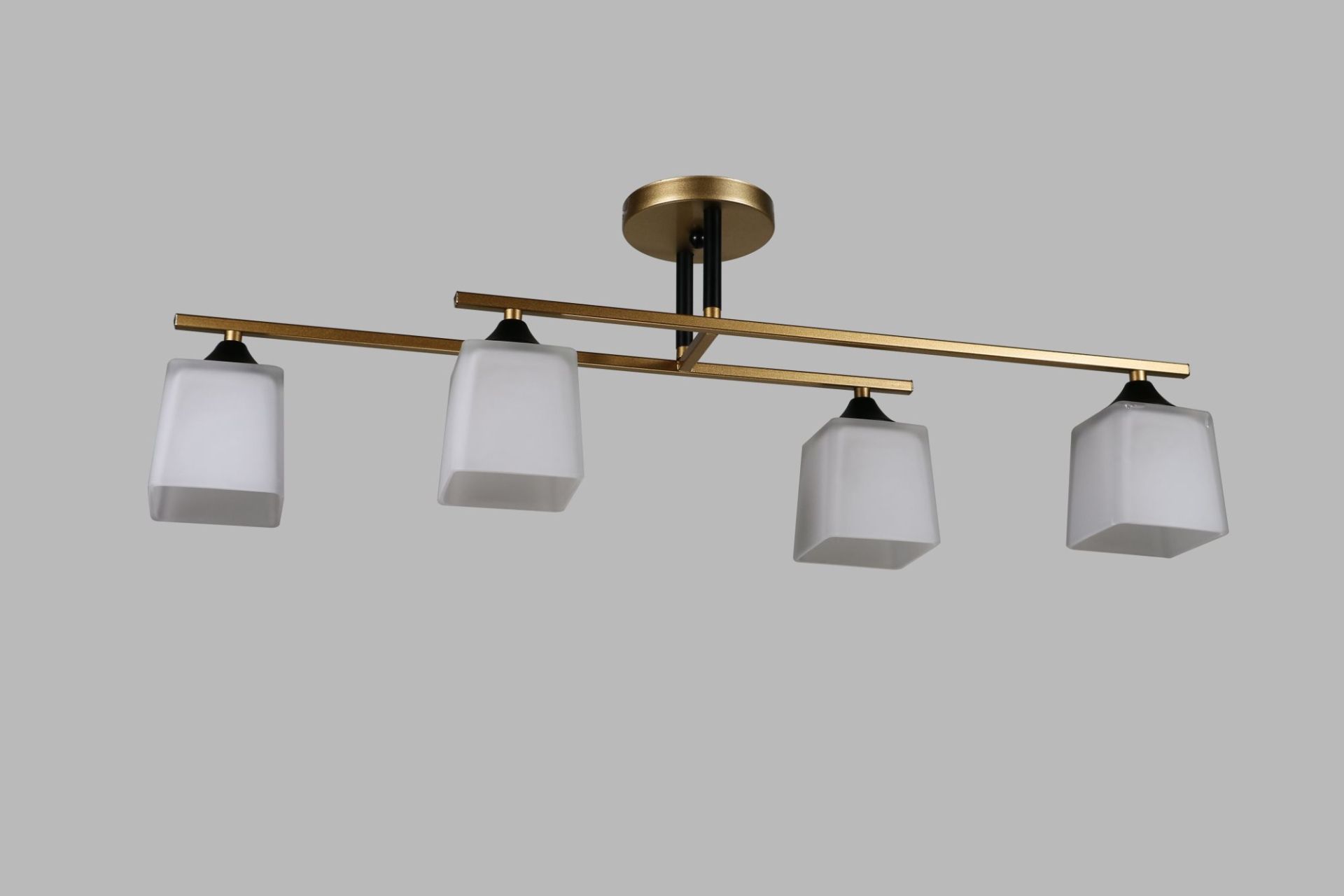 Плафони виконані у білому кольорі та мають квадратну форму, завдяки чому світло м’яко розсіюється й наповнює простір приємною, затишною атмосферою. Лаконічна геометрія підкреслює сучасний характер люстри та робить її універсальним рішенням для різних інтер’єрів.