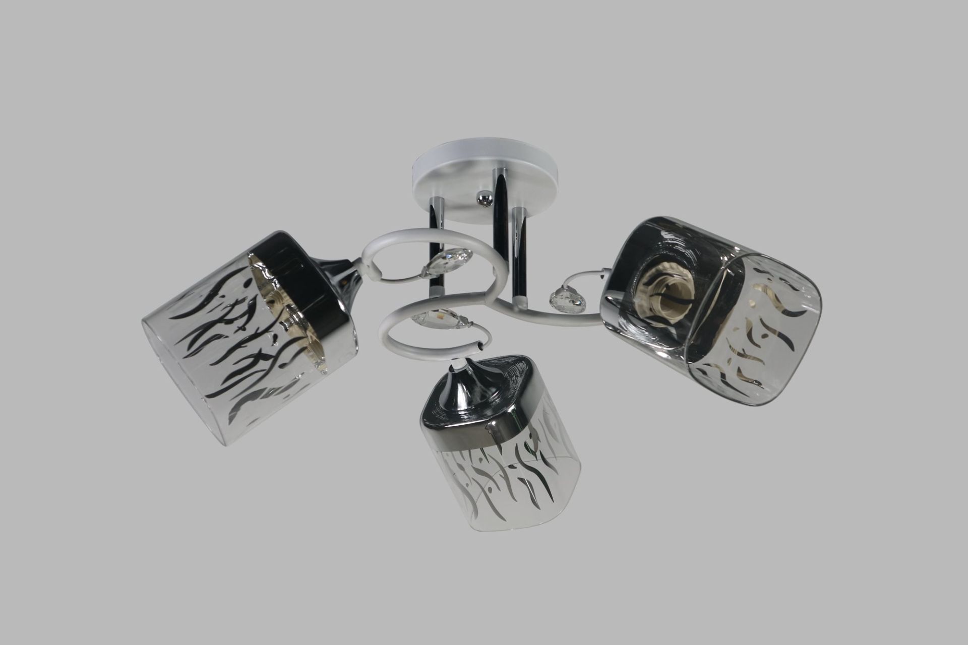 Каркас люстри виконаний у білому кольорі з хромованими елементами, що надає виробу легкості, сучасного вигляду та робить його універсальним для різних інтер’єрів — від мінімалізму до сучасної класики.
