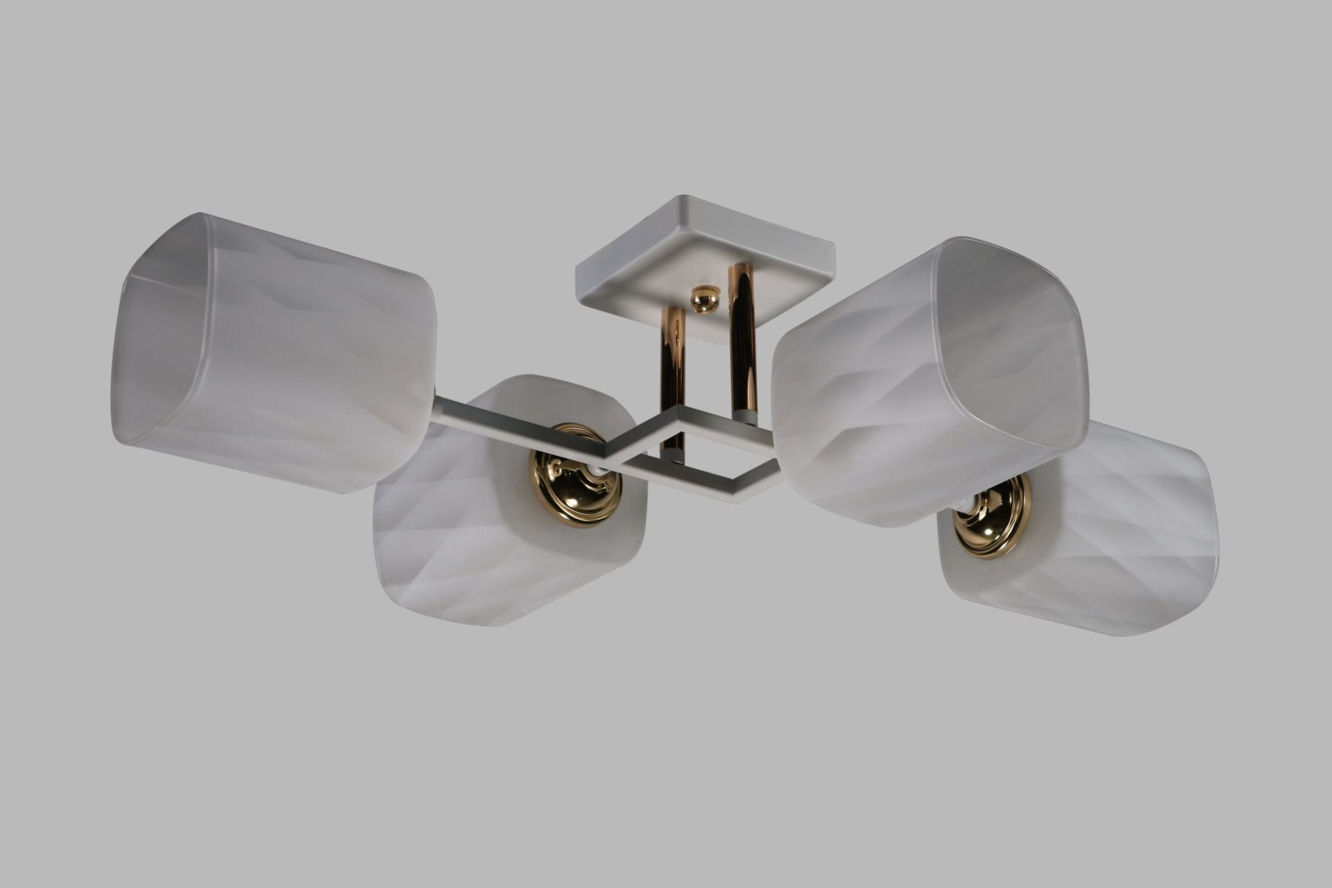 Плафони виконані у білому кольорі та прикрашені рельєфним декором, який красиво розсіює світло та створює м’які світлові акценти. Завдяки такому оформленню освітлення виглядає затишним і водночас декоративним.