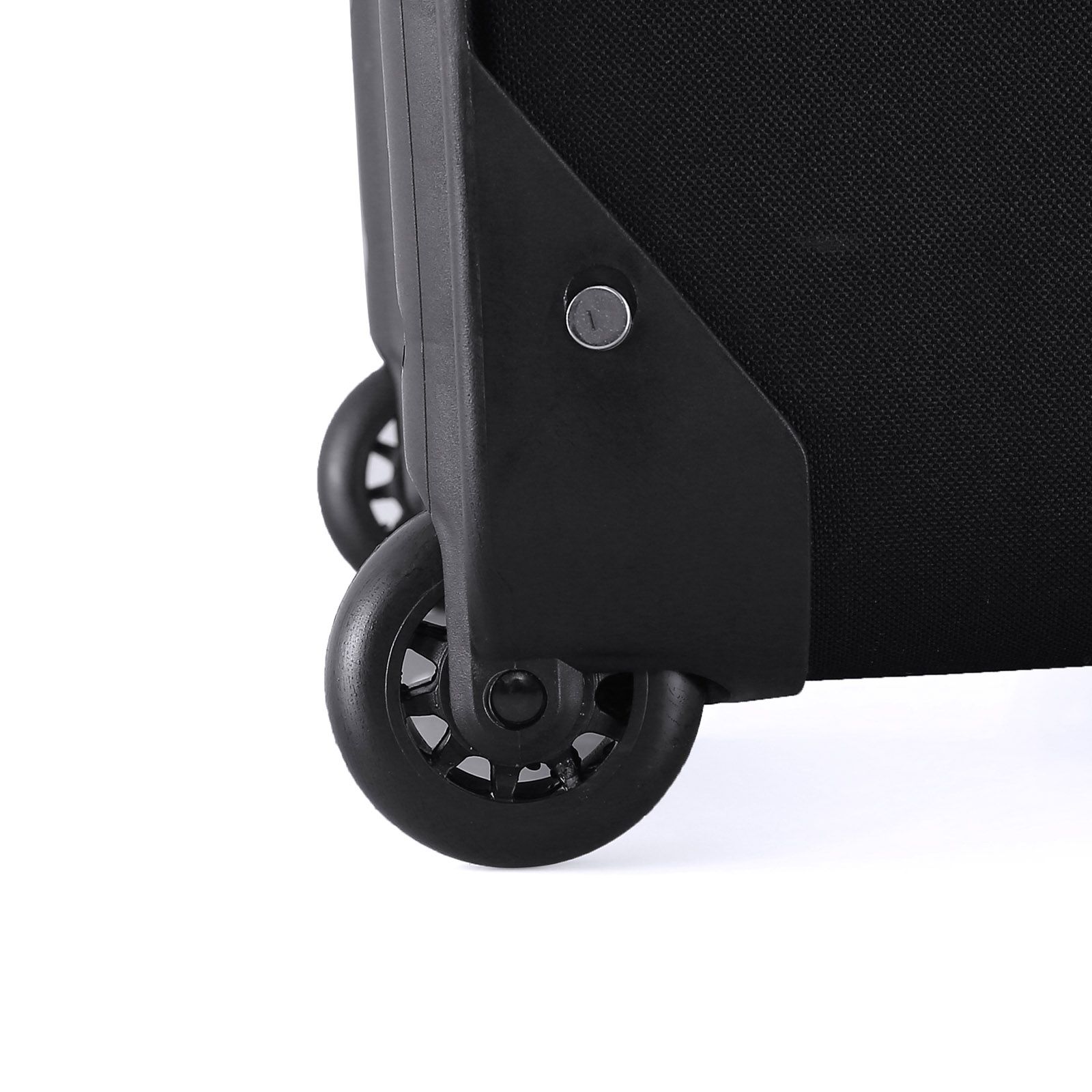 - Приховані колеса великого діаметру - дана модель обладнана двома колесами, що з обох боків захищені пластиковими бортами. Поліуретанові колеса мають достатньо великий діаметр, що забезпечує більш плавне кочення навіть по нерівним поверхням. Валізи з парою прихованих коліс більш захищені від поламок внаслідок ударів.