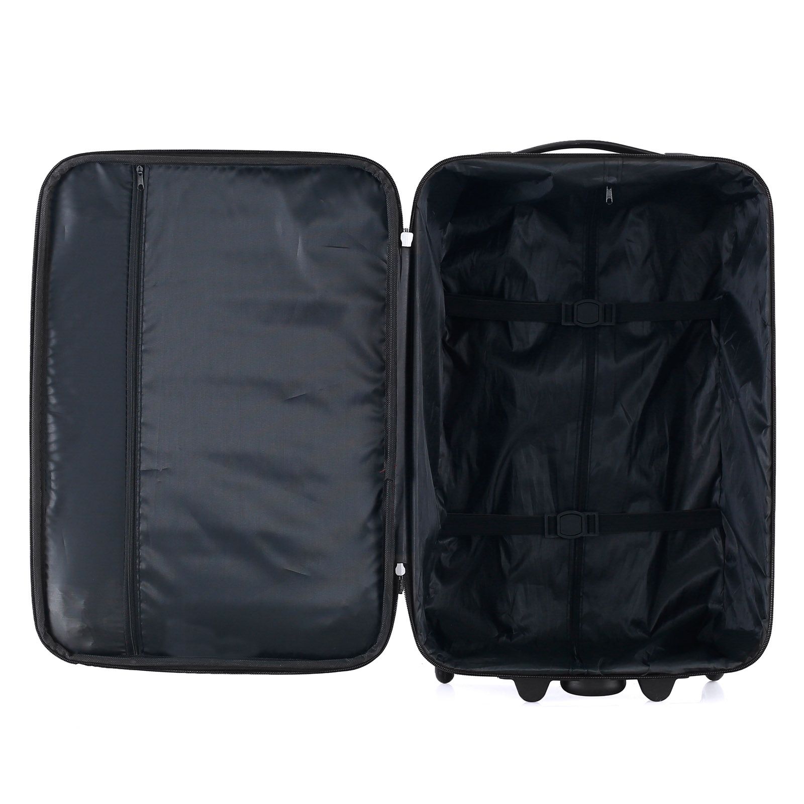 - Еластичні компресійні ремені на застібках призначені для фіксації речей усередині валізи.