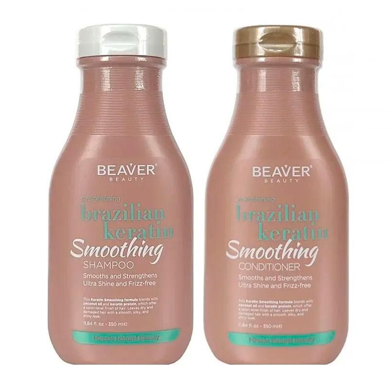 Набір з кератином Beaver Brazilian Keratin Smoothing шампунь та кондиціонер для еластичності волосся, 2х350 мл