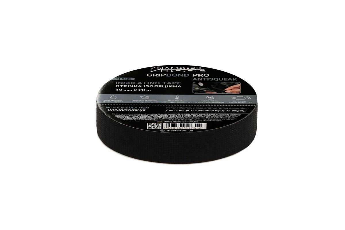 Текстильна стрічка GripBond Pro AntiSqueak 19 мм×20 м чорна MASTERTOOL 44-9520