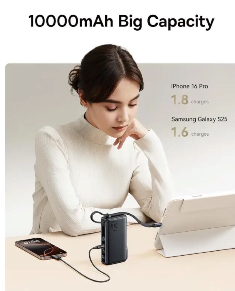 Baseus Nomos NT11 — це універсальне рішення формату 3-в-1, що поєднує функції зовнішнього акумулятора та мережевого зарядного пристрою. Модель розроблена для користувачів, яким необхідна висока потужність, швидка зарядка та максимальна універсальність у будь-яких умовах: вдома, в офісі, у подорожах та відрядженнях.
