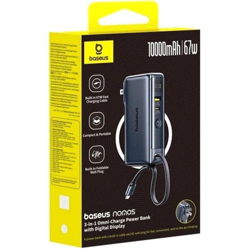 Повербанк Baseus Nomos NT11, Omni Charge, Digital Display, 10 000 mAh, 67W, Black, P10078807123-00