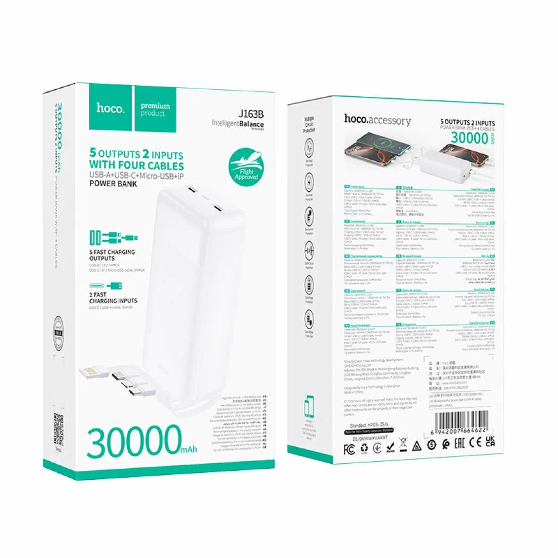 Повербанк Hoco J163B, 30000mAh, 10W + кабелі 4в1 USB-А, Lightning, Type-C, MicroUSB, white
