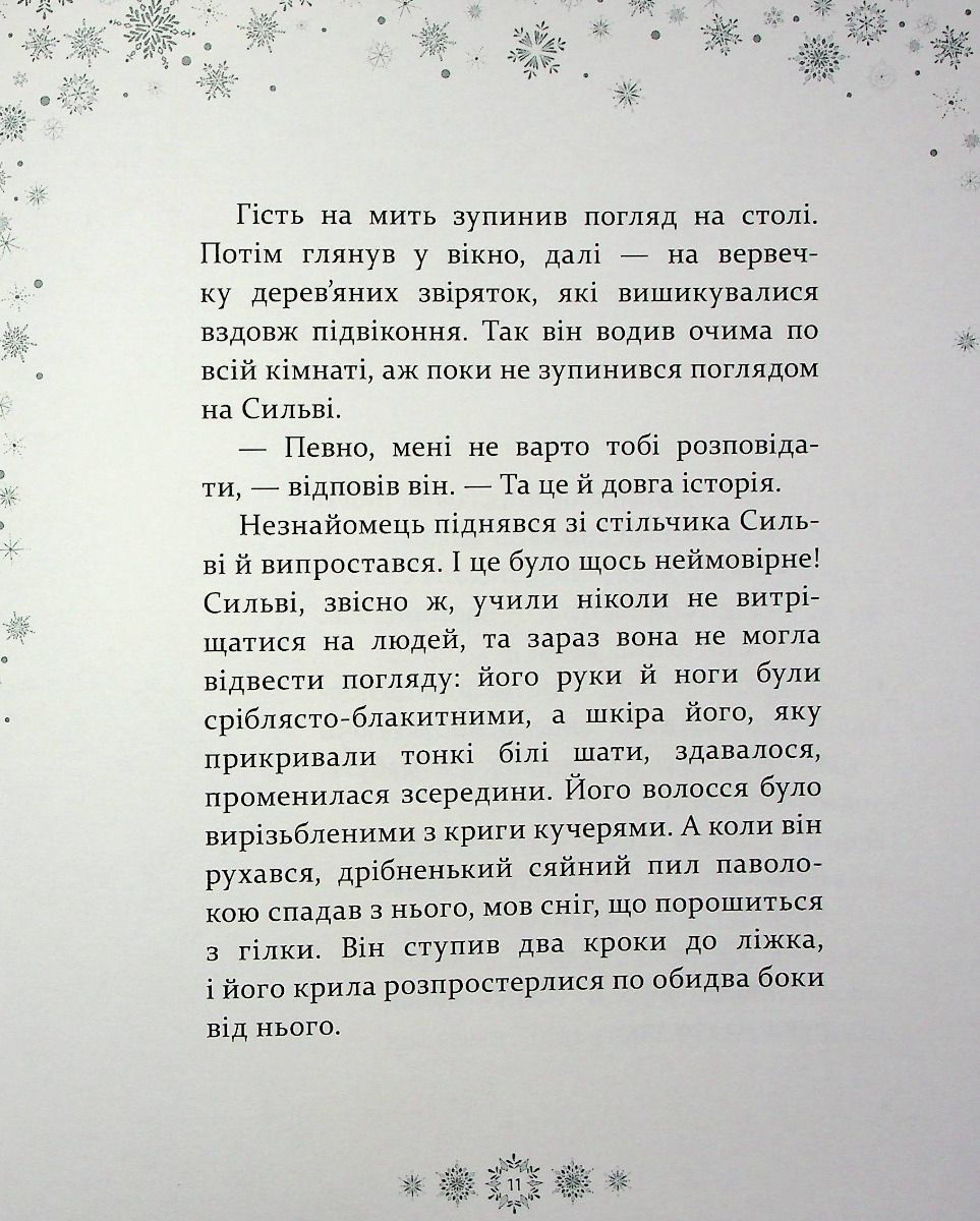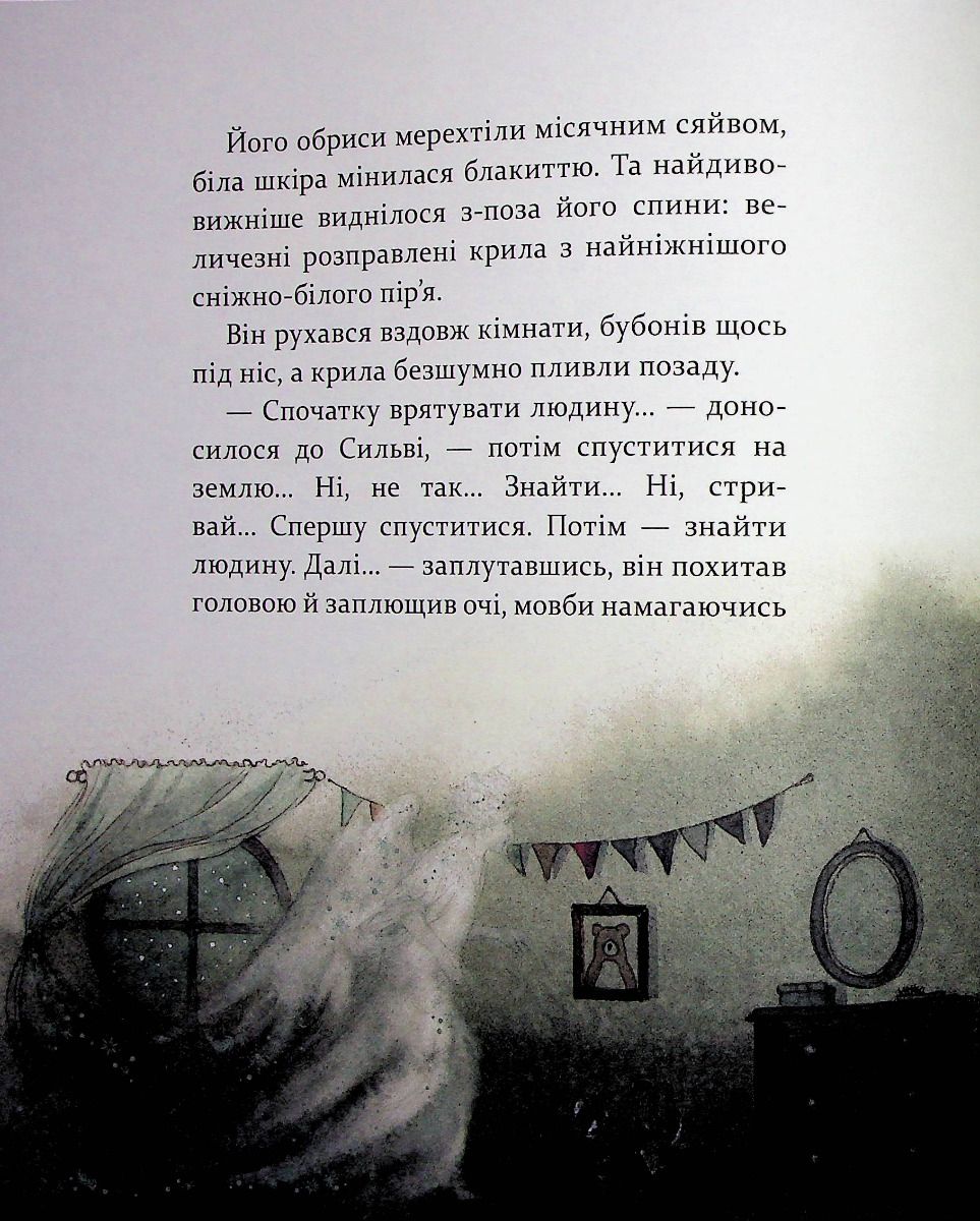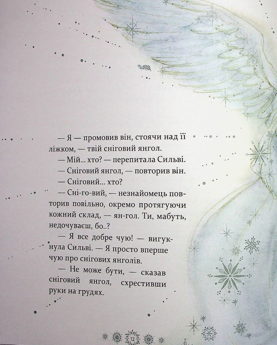 "Тепер Сильві знала напевне, що сніговий янгол був там, із нею, наглядав за нею, увесь цей час, як і обіцяв. Вона не забула його й знала, що він в її пам’яті назавжди. Його не можна було прикликати, наражаючи себе на небезпеку: це так не працює. Він з’являвся лише тоді, коли справді їй був потрібен, хоч вона про це й не думала.