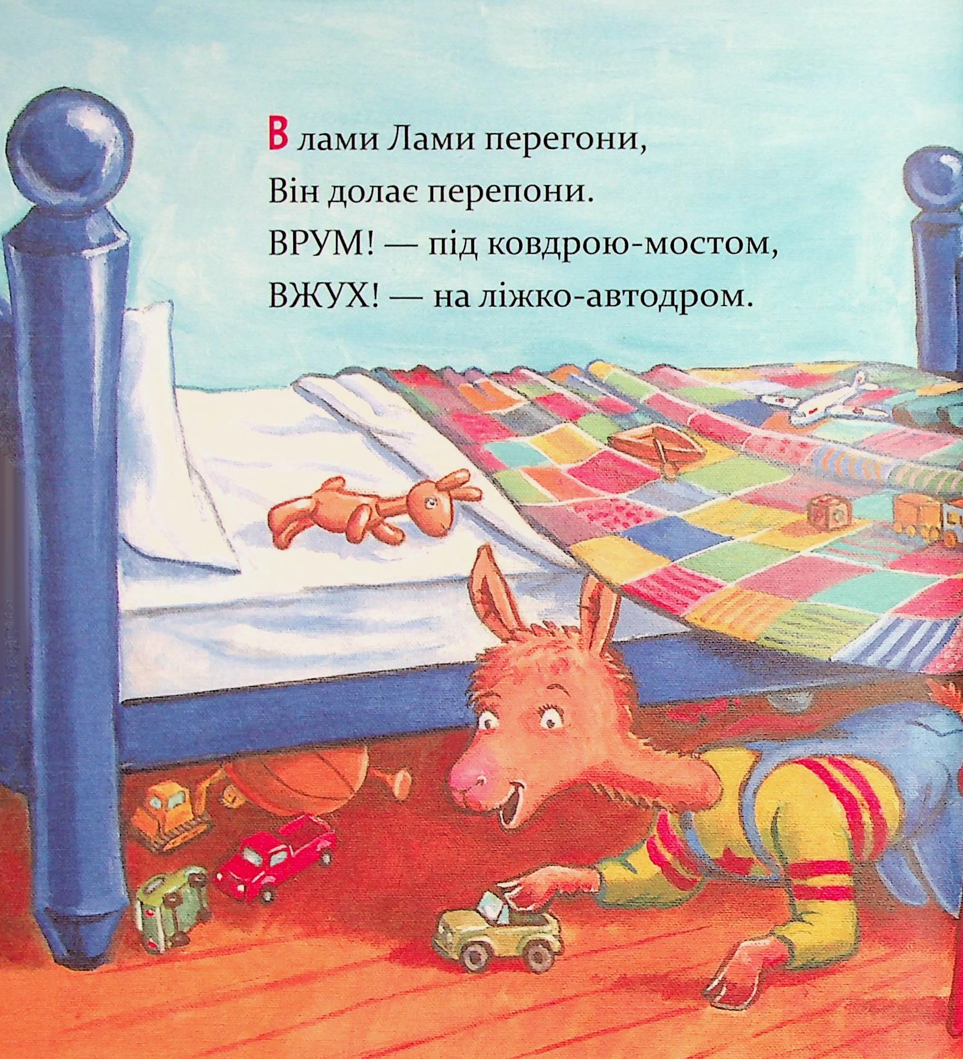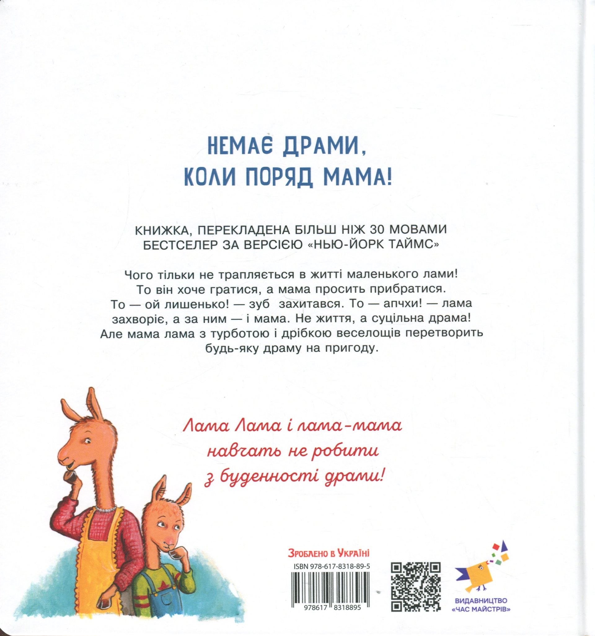 Чого тільки не трапляється в житті маленького лами! То він хоче гратися, а мама просить прибратися. То — ой лишенько! — зуб захитався. То — апчхи! — лама захворіє, а за ним — і мама. Не життя, а суцільна драма! Але мама лама з турботою і дрібкою веселощів перетворить будь-яку драму на пригоду.