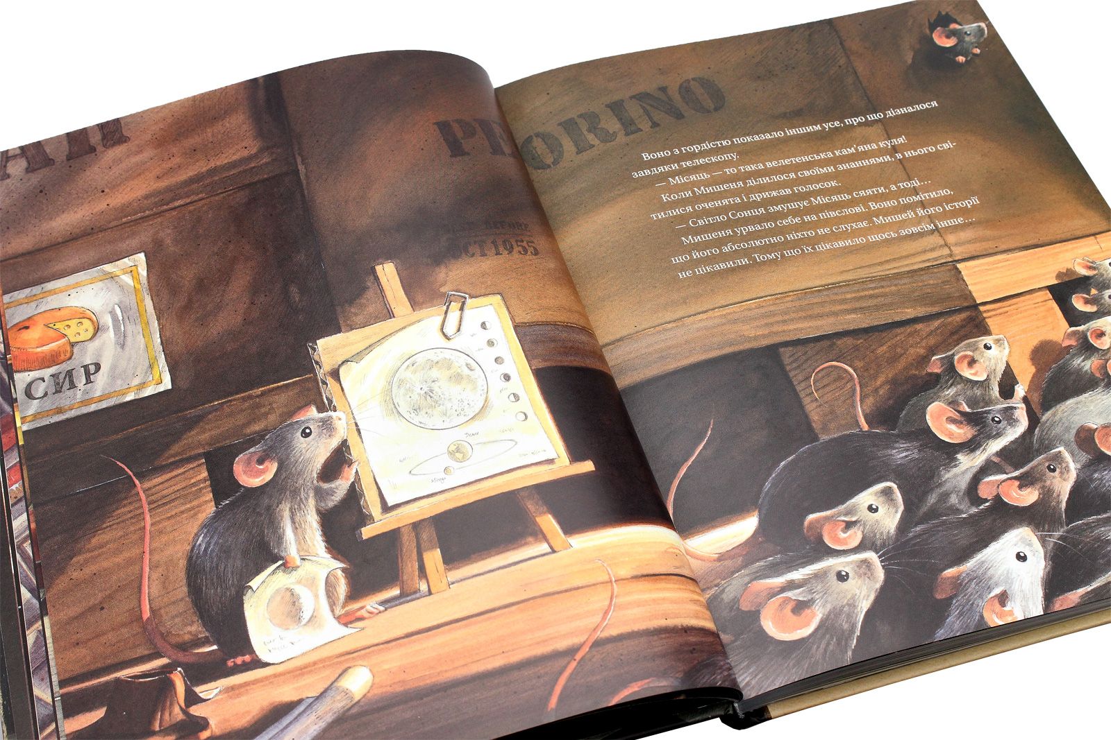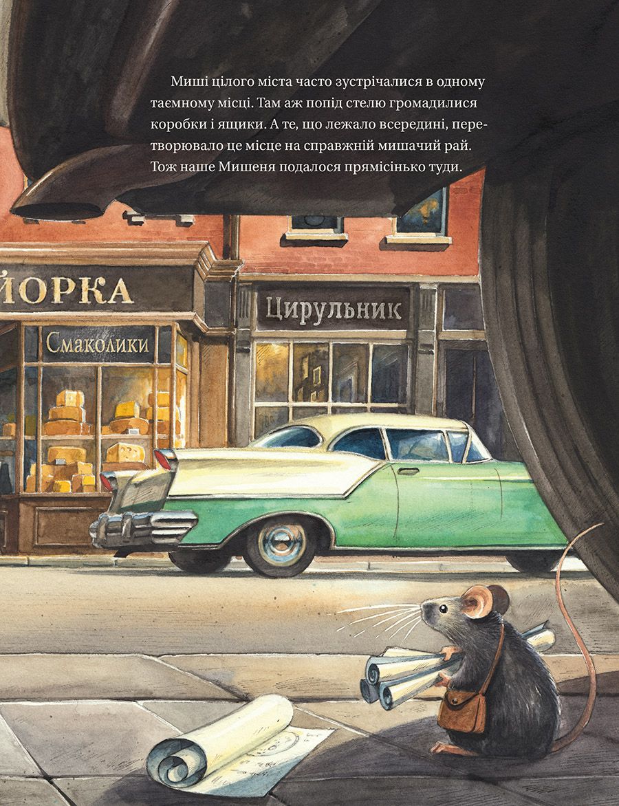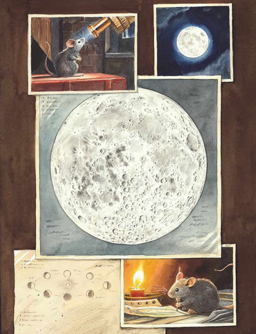 У Нью-Йорку 1950-х років одне надзвичайно допитливе Мишеня щоночі спостерігає за нічним небом через телескоп. Воно точно знає: Місяць — це не велетенська головка сиру, як вважають інші миші, а величезна кам’яна куля, що вабить своєю таємничістю.