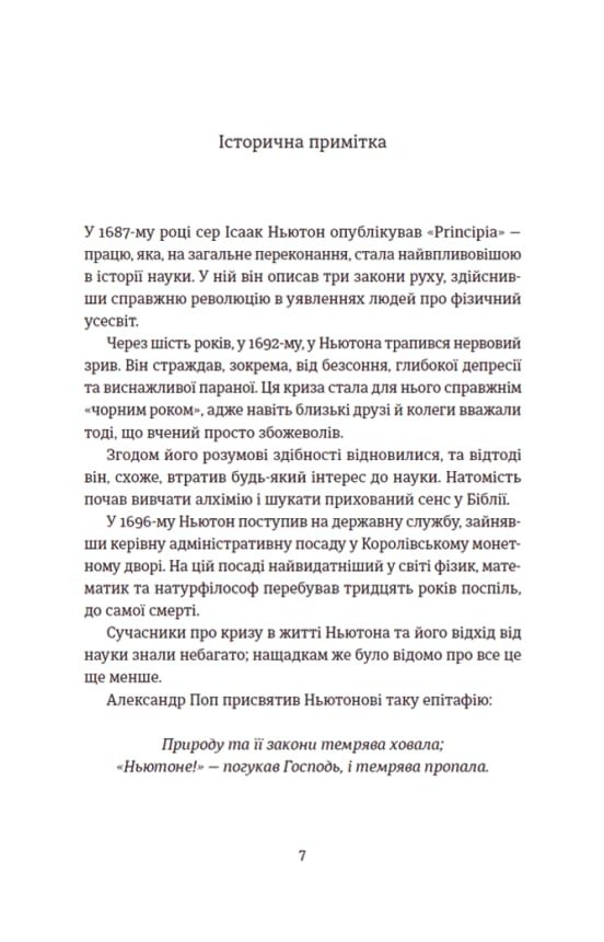Та він володіє знанням, недоступним іншим, адже для нього ця епоха вже давно минуле. Стентон прибув із майбутнього завдяки відкриттю Ісаака Ньютона, яке вчений заповів розкрити лише через сто років після власної смерті. Його місія — змінити трагічний хід історії, перетворивши «століття смерті» на Золотий Вік. Він мусить не допустити війни. Війни, що почнеться з єдиного пострілу.