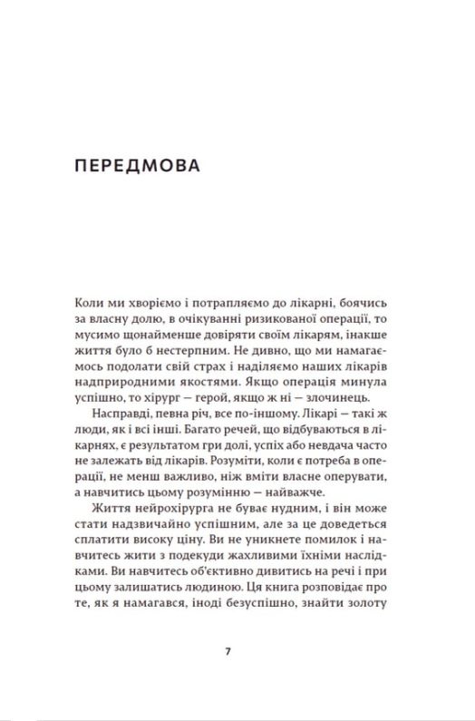 Відверта сповідь легендарного британського нейрохірурга. Ця книга — не просто медичні мемуари. Це глибока, місцями болюча, але неймовірно гуманна розповідь про те, що відчуває лікар, тримаючи в руках людське життя. Генрі Марш, відомий у всьому світі фахівець, відверто розповідає про свої професійні тріумфи та фатальні помилки, від яких не застрахований жоден хірург.