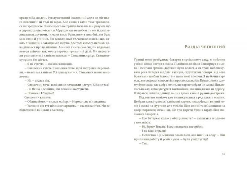 «Прощавай, зброє» - один із найвидатніших американських романів про Першу світову війну. Захоплива, частково біографічна оповідь Ернеста Гемінґвея висвітлює жорстокі реалії війни. У ній знаменитий гемінґвеївський телеграфний стиль перемежовується вкрапленнями потоку свідомості, і від того емоції твору сприймаються особливо гостро. Це історія мужності і страху, побратимства, любові та болю. Історія, у якій однаково сильно звучати почуття обов''язку та відчуття «не твоєї війни». Незабутня історія кохання, яке є лиш ілюзорним острівцем спокою і щастя.