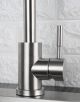 Змішувач для кухні SUS виготовлений із високоякісної нержавіючої сталі марки SUS 304. Нержавіюча сталь впевнено входить до ринку сучасної сантехніки, завдяки своїй міцності та практичності змішувачі з нержавіючої сталі на довго стануть надійними помічниками на кухні та ванній. Нержавіюча сталь SUS 304 практично не схильна до впливу хімічних елементів мийних засобів і надовго збереже бездоганний зовнішній вигляд і функціонал.