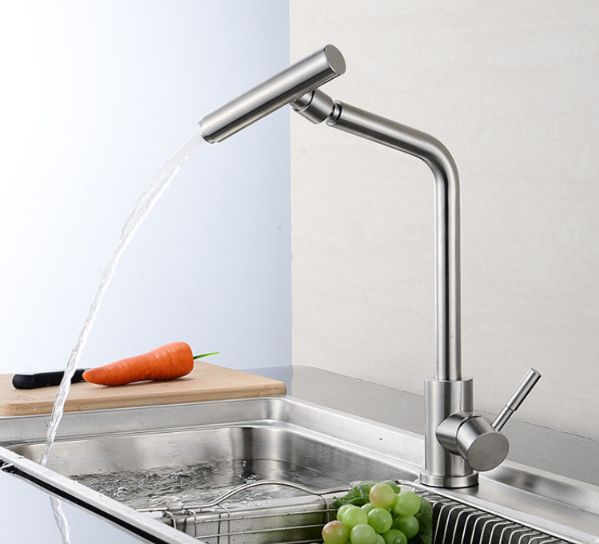 Змішувач для кухні з нержавіючої сталі, вилив обертається на 360*
