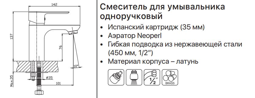 Модель ASIO 001 від виробника HAIBA обладнана литим корпусом із неповоротним виливом. Висота змішувача 13.7 см, кут нахилу зливу 10 градусів. Прилад монтується врізним способом в один отвір, для фіксації використовуються кріплення "шпилька". Керамічний картридж 35 мм виконує функції змішування гарячої води з холодною.Ричаж використовується для настроювання напору та температури води. Під'єднання до води здійснюється за допомогою гнучкої підводки. ASIO 001 буде оптимальним вибором за потреби купити якісний, стильний змішувач для рукомийника, який витримає щоденну експлуатацію впродовж багатьох років.