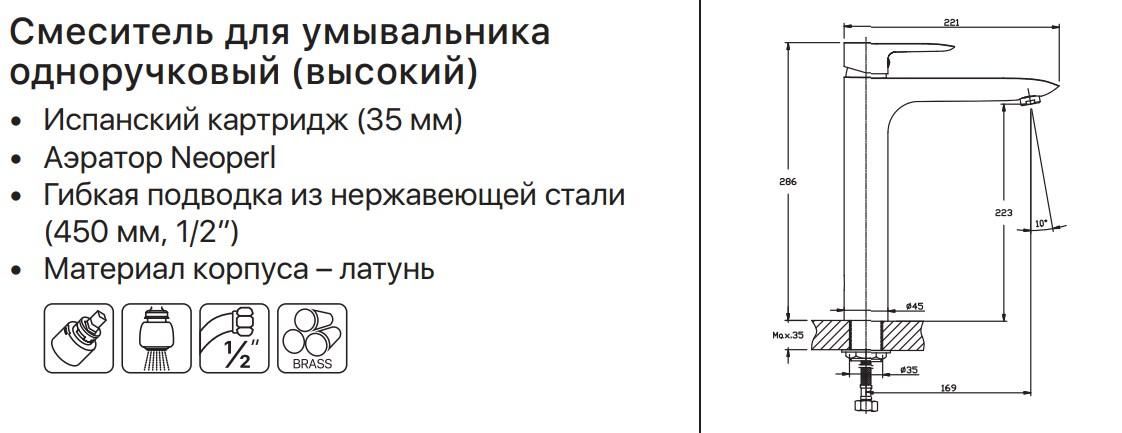 Високий змішувач для умивальника чаші Haiba COLUMBIA