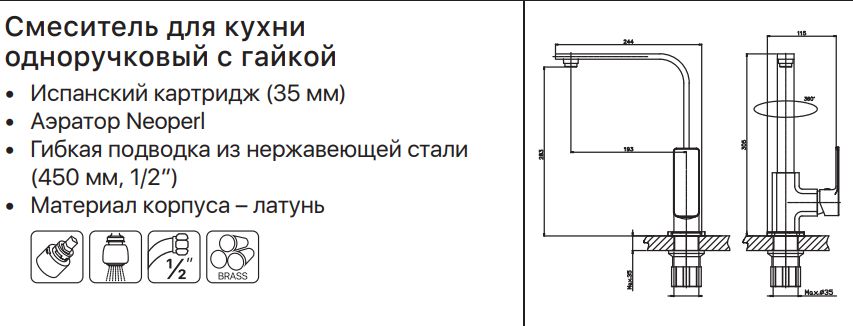 - Корпус — латунь категорії А. Висока якість продукції забезпечує міцність і неперервні матеріали. Вміст медіа матеріалу корпусу - 60%.