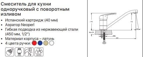 Цей змішувач із серії MAGIC зроблений із латуні, має традиційне хромоване покриття. Прилад обладнаний низьким, поворотним виливом. Він монтується врізним способом, підводка відбувається за допомогою під'єднання гнучких шлангів гарячої й холодної води. Обладнаний керамічним картриджем 40 мм, що робить його надійним і дає змогу уникнути протікання води. Завдяки такому механізму змішування відбувається регулювання води необхідної температури. Саме керування здійснюється важелем, який виконує функції регулювання потужності подавання води, а також її температури.MAGIC 004 має вилив завдовжки 25 см і заввишки 12 см, який обладнаний аератором, його функції — пом'якшувати воду та робити економну витрату. Ручка керування класична, має декорування малюнком.