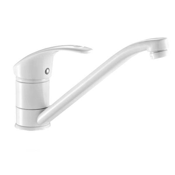 Змішувач для умивальника HAIBA MARS 004 в білому корпусі з поворотним виливом 25 див. Змішувач призначений для вбудованого монтажу на один отвір, кріплення «шпилька». Принцип змішування води — одноважільний. Підключення через гнучку підводку довжиною 45 см, яка поставляється в комплекті.