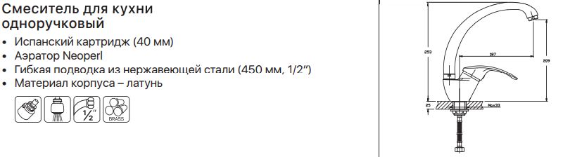 Призначення змішувачаДля кухонної мийки