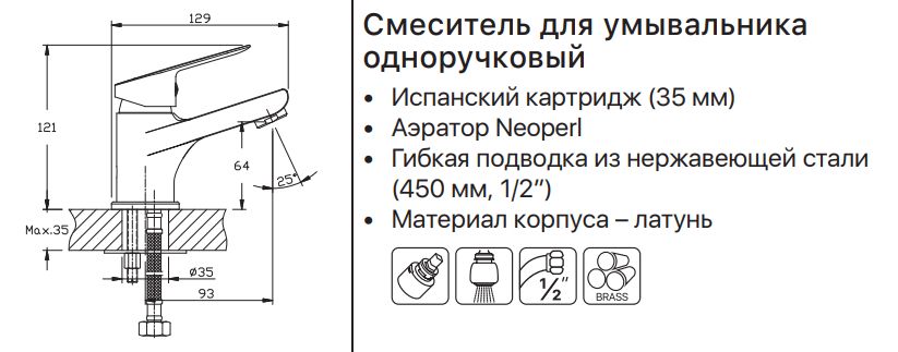 гнучка підводка з нержавіючої сталі 450 мм, 1/2"