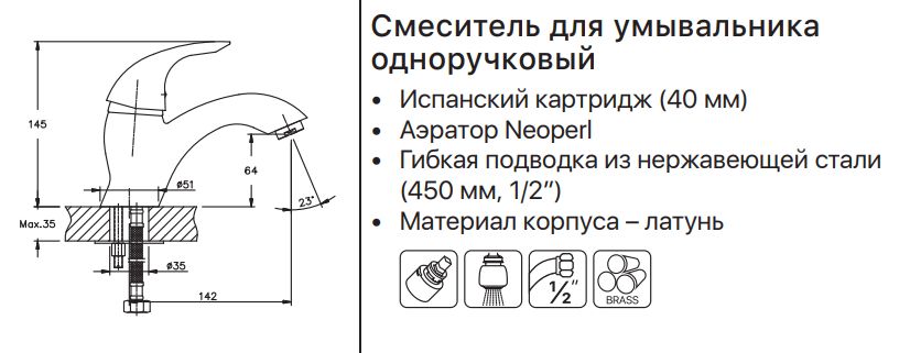 гнучка підводка з нержавіючої сталі 450 мм, 1/2"