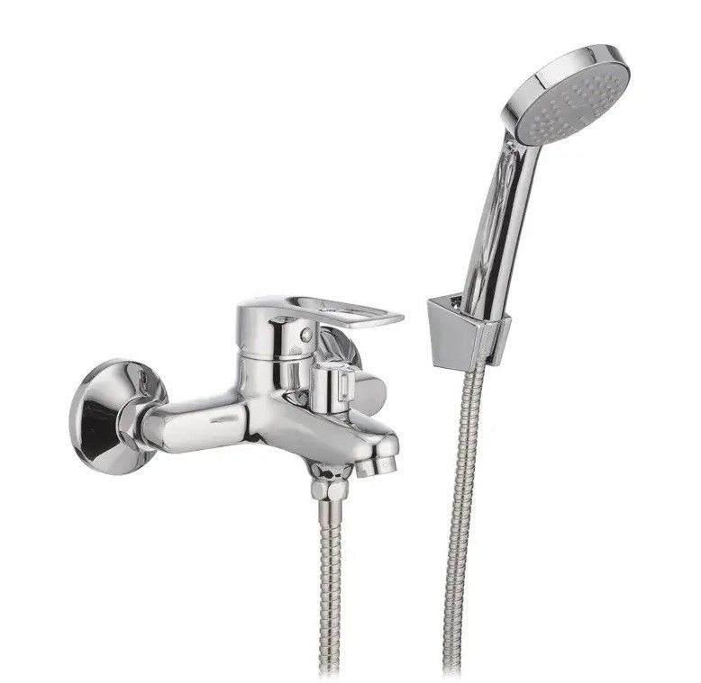 Змішувач для ванної Cron GERMES 009 euro укомплектований душовим шлангом 150 см, душовою лійкою, кронштейном для лійки, ексцентриками і декораторами.