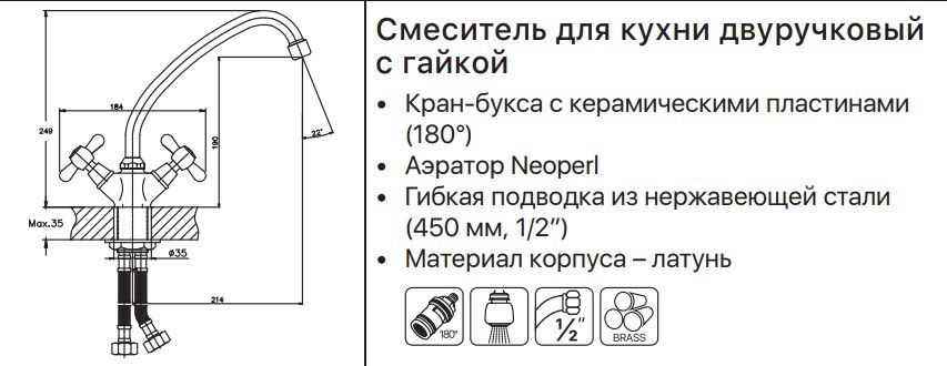 - Матеріал корпусу – латунь категорії А .Висока якість продукції забезпечено міцними і зносостійкими матеріалами. Вміст міді матеріалу корпусу – 60%.