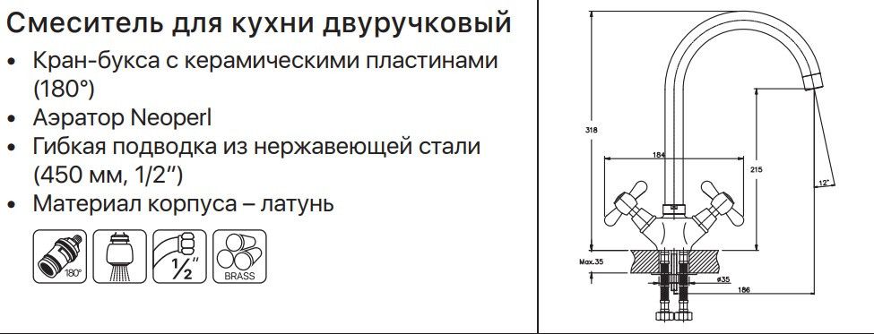 Призначення змішувачаДля кухонної мийки
