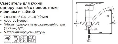 Ця модель змішувача від виробника HAIBA зроблена з латуні, якій властиві надійність і довгий термін експлуатації. Прилад покритий зносостійким хромованим покриттям, яке не піддається впливу хімічних речовин і корозії. Має короткий, поворотний вилив довжиною 15 див Керування змішувачем відбувається за допомогою повороту важеля.В якості механізму для змішування води встановлений керамічний картридж 40 мм Монтується AGAT 555-15 СМ на рукомийник врізним способом і кріпиться з допомогою гайки. Такий пристрій буде добре виглядати з умивальником будь-якого дизайну, так як зроблений за сучасним вимогам та технологіям.