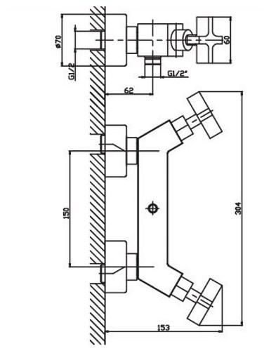 В якості керуючого елемента задіяно два поворотні вентилі. Вони регулюють як потужність струменя, і температуру подачі води. У комплекті до змішувача йдуть душовий шланг і лійка та тримач. Для змішування гарячої води з холодною використовується кран буксу.