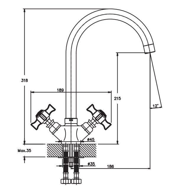 Тип змішувача (кран)Двовентильний
