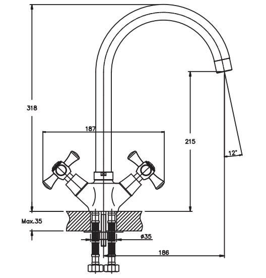 Тип змішувача (кран)Двовентильний