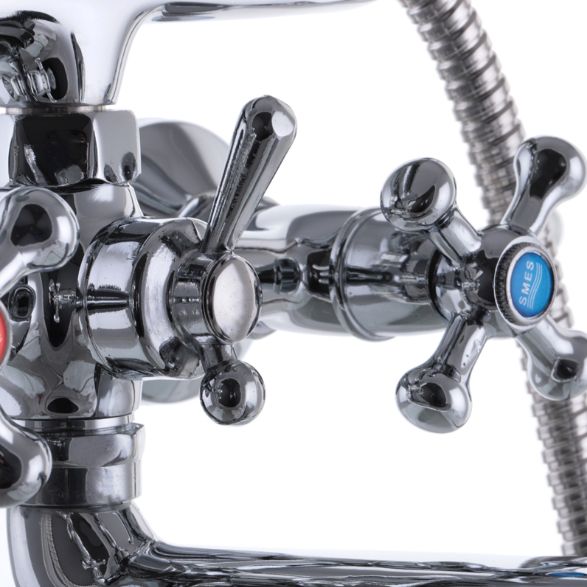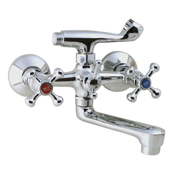 Змішувач латунний Champion Smes 142 настінний для ванни з литим виливом довжиною 15 см і кульовим перемиканням на душ.