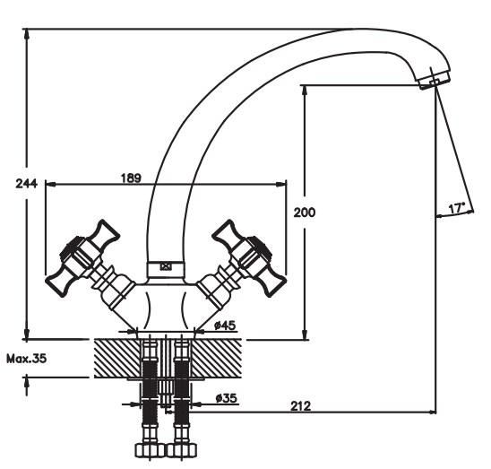 Тип змішувача (кран)Двовентильний