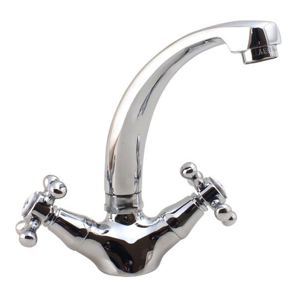 Змішувач для мийки (кухня, корпус-латунь, ручки латунь, поворотний гусак латунь. Букси відкриття води пів обороту кераміка. В комплекті - шпильки для кріплення змішувача,прокладки, шланги (45см) для підключення води.