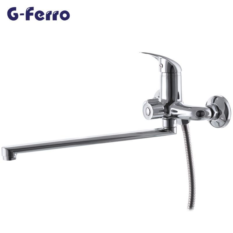 Змішувач в ванну кімнату G-Ferro Premiere 006 euro покриття хром, поворотний вилив 35 див. Картридж включення води 35 мм кераміка, перемикання з виливу на лійку euro кераміка букса, тобто не залежить від тиску (дуже надійне!).