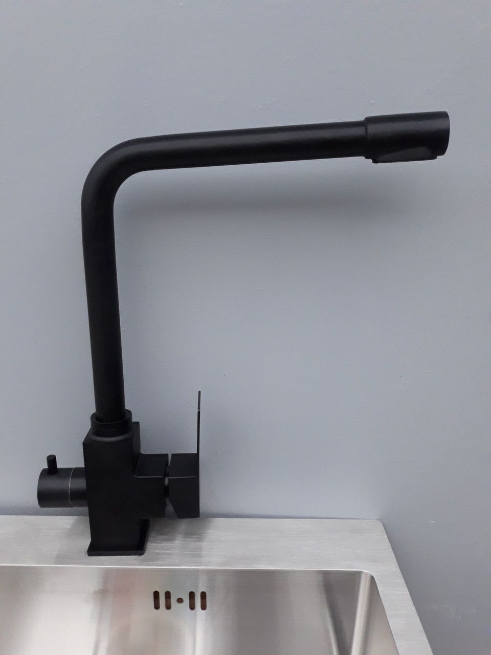 Функціональність. Цей кухонний кран з фільтром призначений для використання із системою очищення води (за типом зворотного осмосу). На практиці це означає можливість отримати очищену питну воду без загромадження вільного простору.
